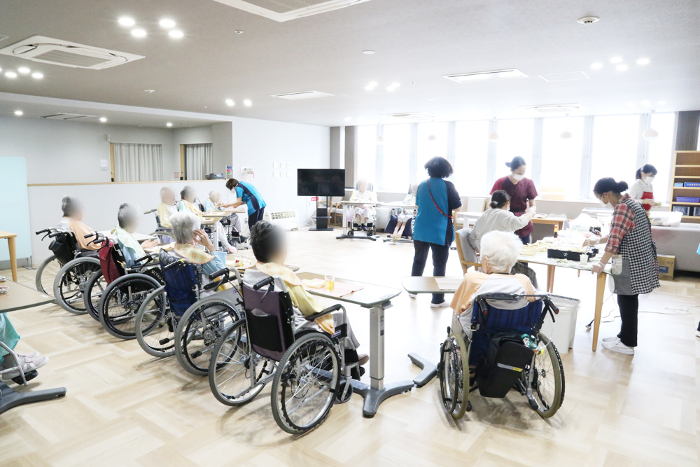 | 管理栄養士(栄養士) | 栄養士も配置されています。入居者様に合わせた食事メニューの立案や食事形態など食べやすい形で提供するために、食事の細かな指示を調理員に行なっています。塩分制限などの食事制限ある方の食事もメニューを考えて作っています。また、季節を感じる行事食の提供なども積極的に行なっております。 |