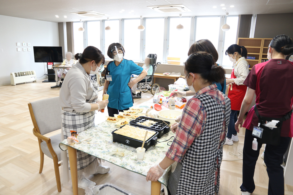 | レクリエーション | お誕生日会や七夕、盆踊、クリスマス会などの季節行事をはじめ、 和泉庵(模擬喫茶)の開催など、患者さまの状態に合わせたレクリエーションも企画しています。 |