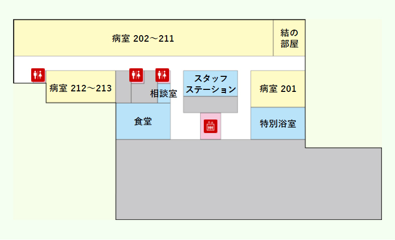 病室/結の部屋/相談室/スタッフステーション/食堂/特別浴室