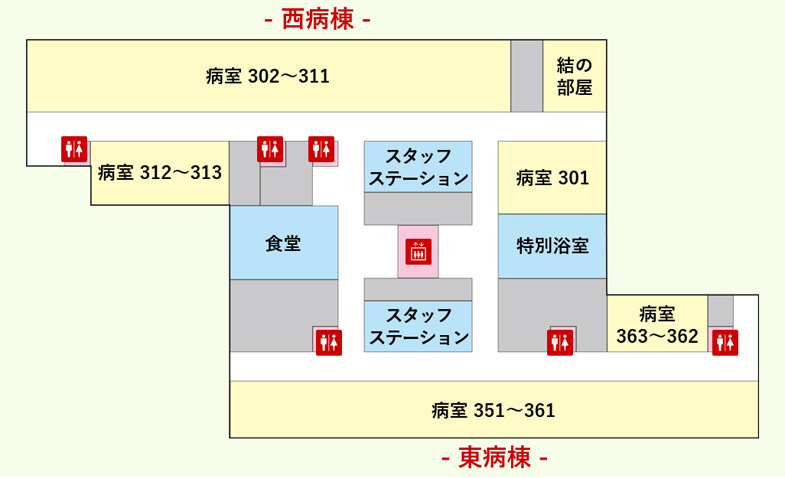 - 3F 西病棟40床/東病棟40床