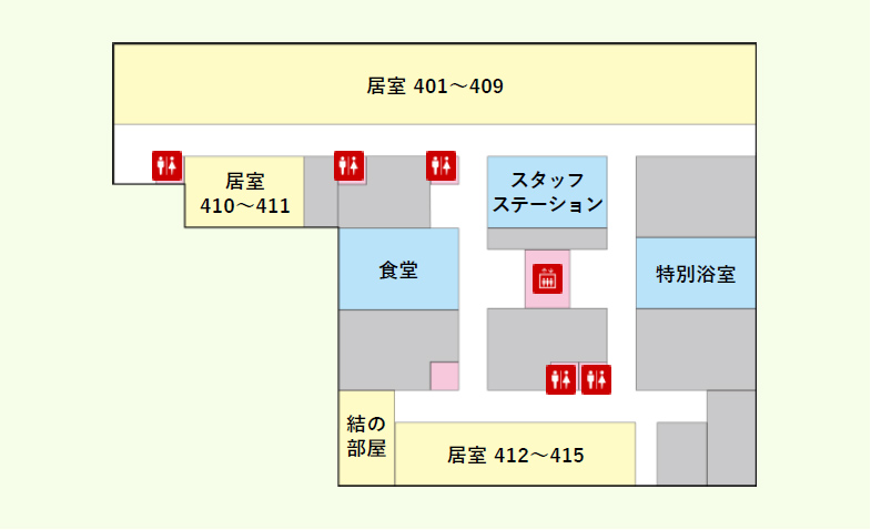 病室/結の部屋/スタッフステーション/食堂/特別浴室